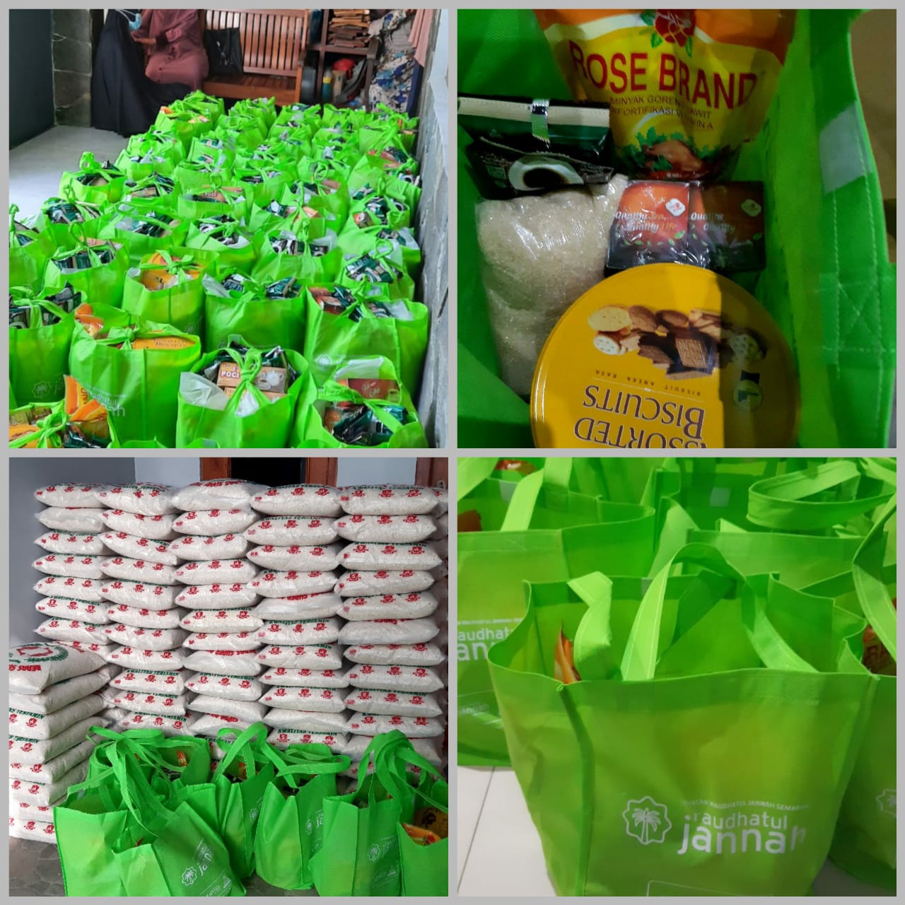 Penyampaian bingkisan dikoordinasikan oleh Bidang Sosial & Kemanusiaan Yayasan Raudhatul Jannah Semarang bersama dengan Paguyuban Raudhatul Jannah (PRJ), dibantu oleh RT dan tokoh masyarakat setempat pada hari Sabtu 1 Mei 2021 dan Ahad 2 Mei 2021.