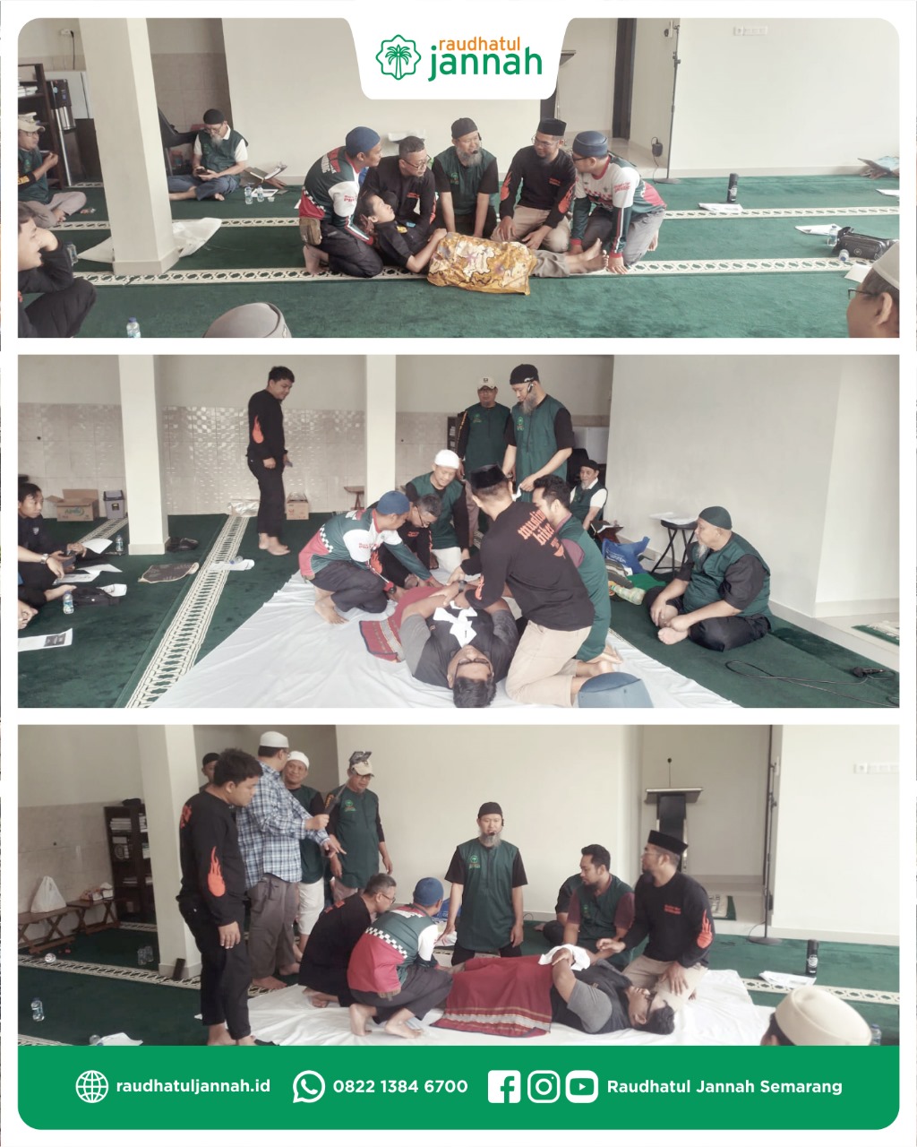 Kegiatan ini diselenggarakan pada Ahad, 21 September 2025/28 Rabiul Awal 1447, bertempat di Masjid Darussalam Muteran Pudakpayung, diikuti oleh 25 orang peserta, dengan sesi praktik langsung mulai dari persiapan kain kafan, memandikan, mengkafani, menshalati, hingga simulasi pemakaman.